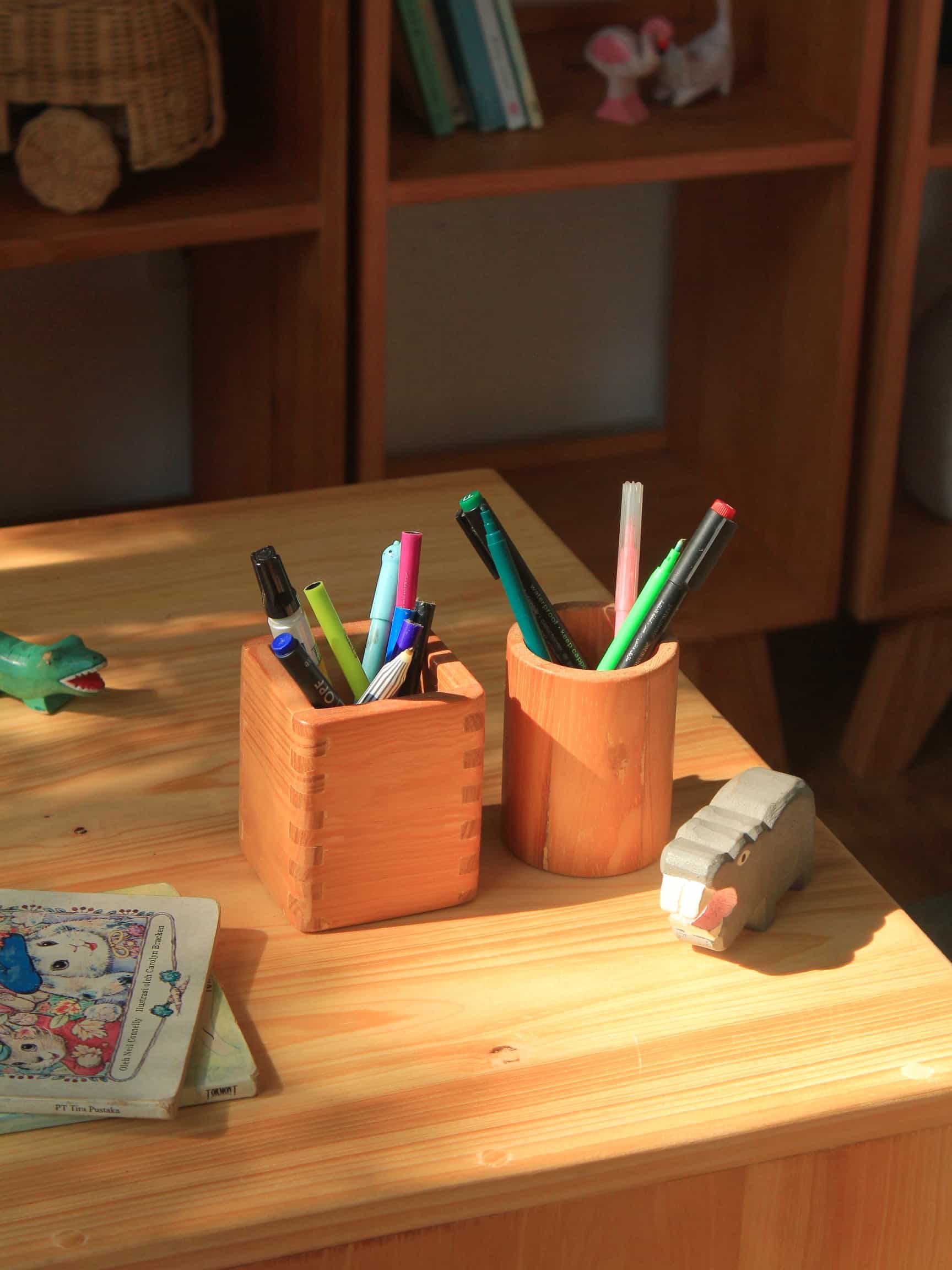Kotak Pensil Kayu Uwitan hadir sebagai organizer alat tulis berbahan kayu solid dengan desain minimalis hangat yang menjaga meja tetap rapi sekaligus menambah sentuhan estetik natural di ruang kerja atau belajar.