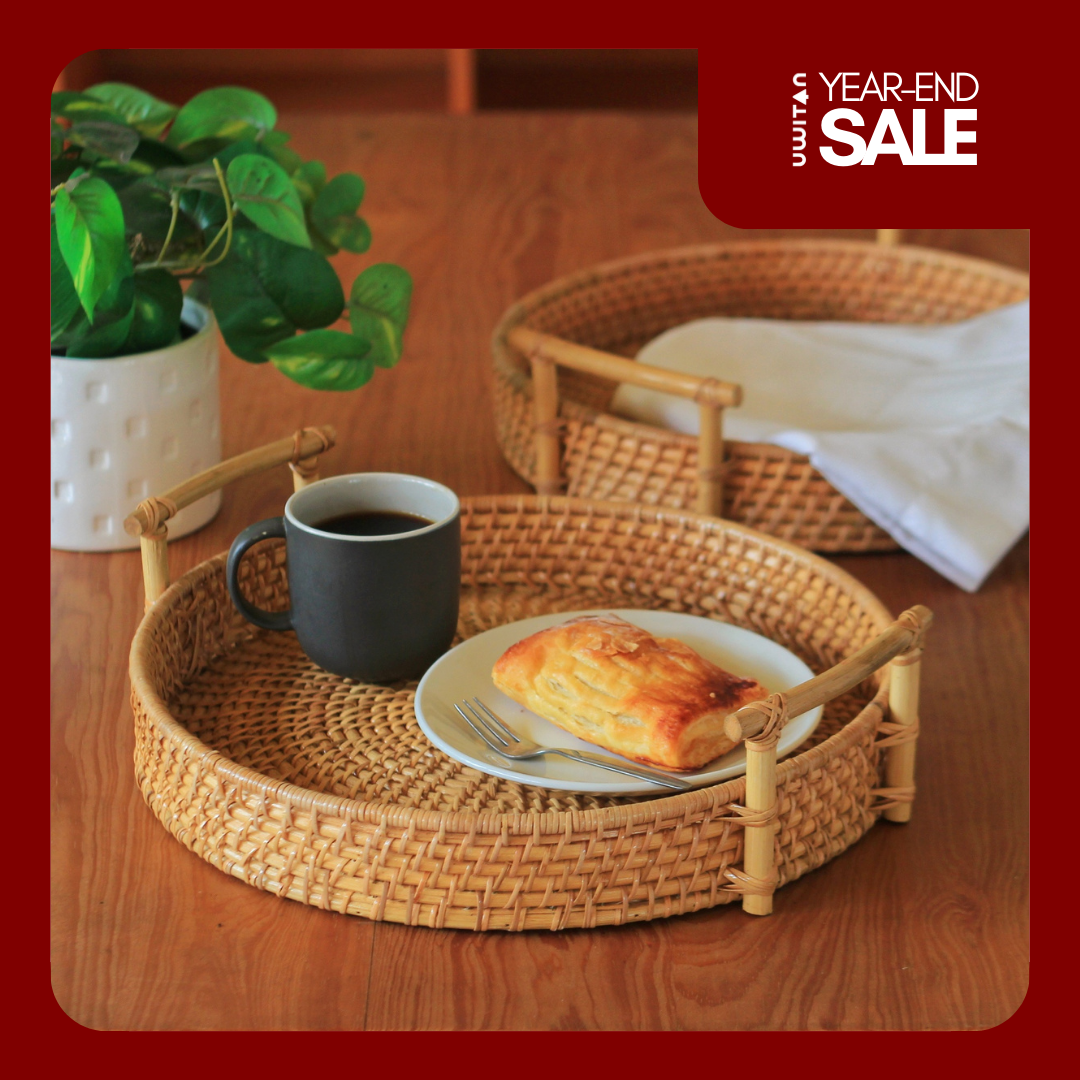 Ona Tray merupakan nampan yang terbuat dari anyaman rotan asli, memiliki desain elegan dan warna natural yang menambah estetika. Nampan ini juga bisa digunakan sebagai tempat menyajikan makanan atau minuman dan lainnya.
